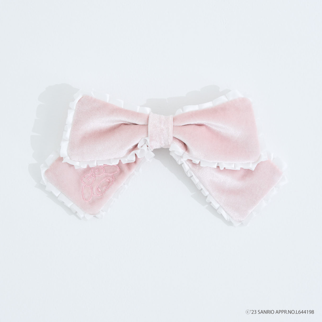 ベロア生地のベースに マットサテン生地のフリルを合わせた とびきりラブリーなヘアアクセサリー。